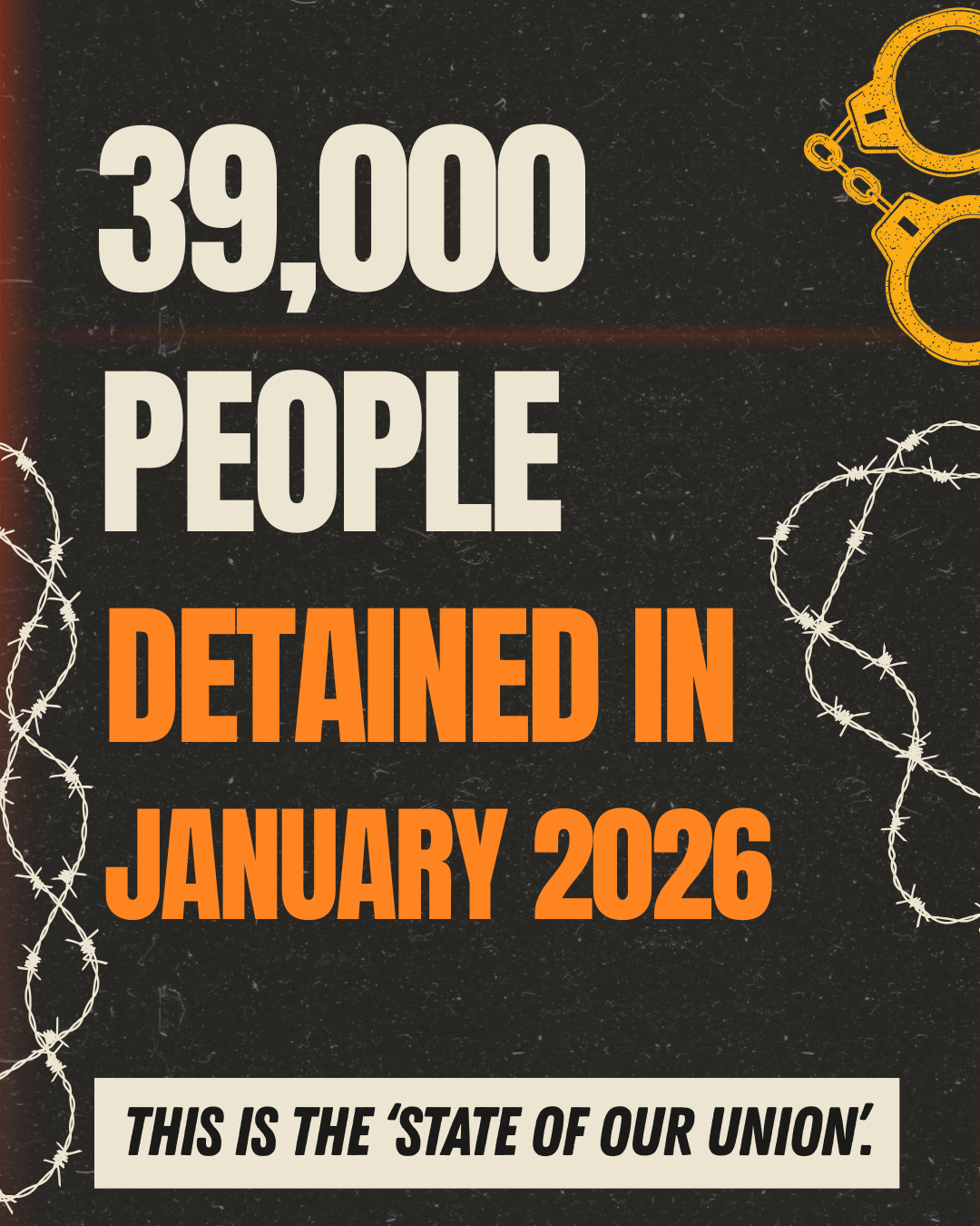 Last year, the President misled the country by saying, “America is back.” The truth is, our country continues to expand systems of abuse. In January alone, over 39,000 people were detained. Congress has poured tens of billions of dollars in funding across ICE, CBP, and DHS, which is driving massive expansion of detention camps and the increase in rogue militarized agents in our cities.